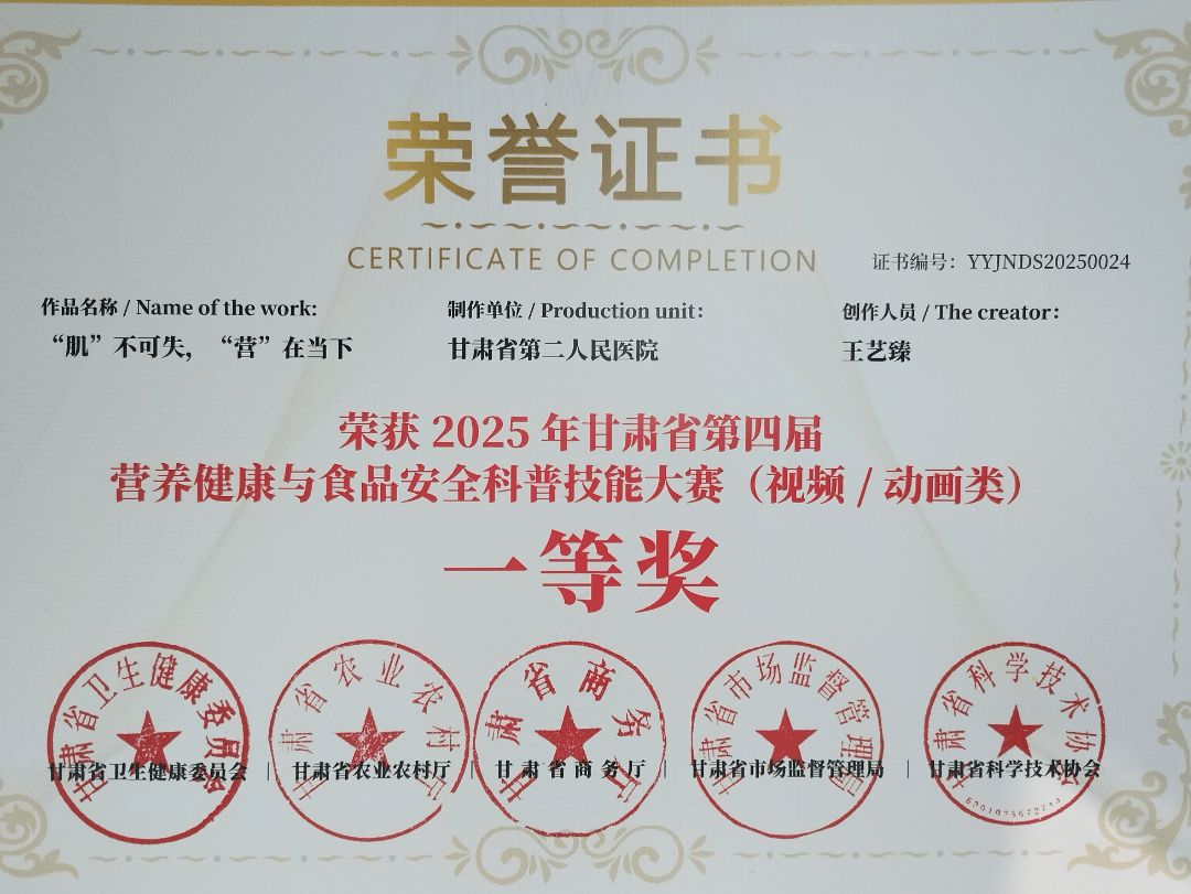 此次佳绩的取得,离不开我院副院长马新换的悉心指点。做为金城首席科普专家、养分学会养分取慢病节制分会从任委员、药学会科普专业委员会从任委员,马新换院长一直“以科普促健康”,鞭策我院科普工做高质量成长。此次获是我院深耕养分健康科普的阶段性。我科将持续摸索“专业+趣味”的科普模式,继续以“让养分学问走进千家万户”为方针,为提拔全平易近健康素养、帮力“健康甘肃”扶植贡献“二院聪慧”取专业力量!